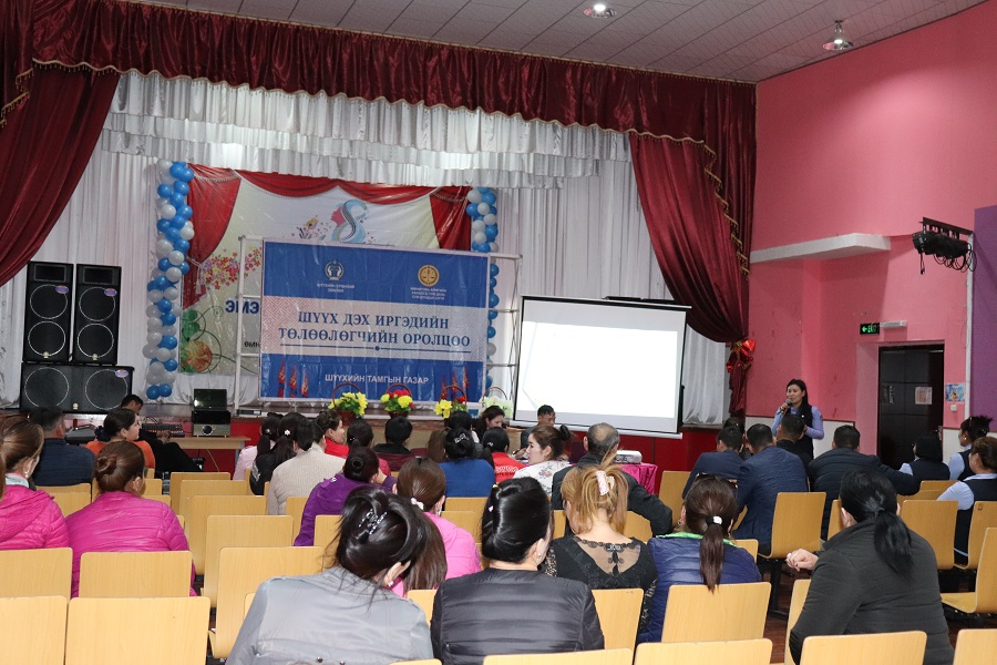2019-03-13 00:00:00 | 377Өмнөговь аймгийн Ханбогд сум дахь Сум дундын шүүхийн харъяа сумдын иргэд, шүүхийн иргэдийн төлөөлөгчөөр сонгогдсон иргэдэд мэдээлэл өгөх сургалтын хөтөлбөрийн дагуу Баян-Овоо сумын соёлын төвд 2019 оны 03 дугаар сарын 12-ны өдөр тус сумаас шүүхийн иргэдийн төлөөлөгчөөр сонгогдсон 37 иргэн болон төрийн албан хаагч нарыг хамруулан нийт 60 гаруй иргэдэд хууль сурталчлан ажиллаа.