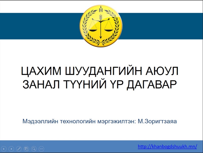 Шүүгч, захиргааны ажилтнуудын эрх зүйн мэдлэг боловсролыг дээшлүүлэх, мэргэшүүлэх, ур чадварыг нэмэгдүүлэх улмаар мэдлэг чадвартаа тулгуурлан шүүн таслах ажиллагааг чанартай үр нөлөөтэй сургалт болсон байна.