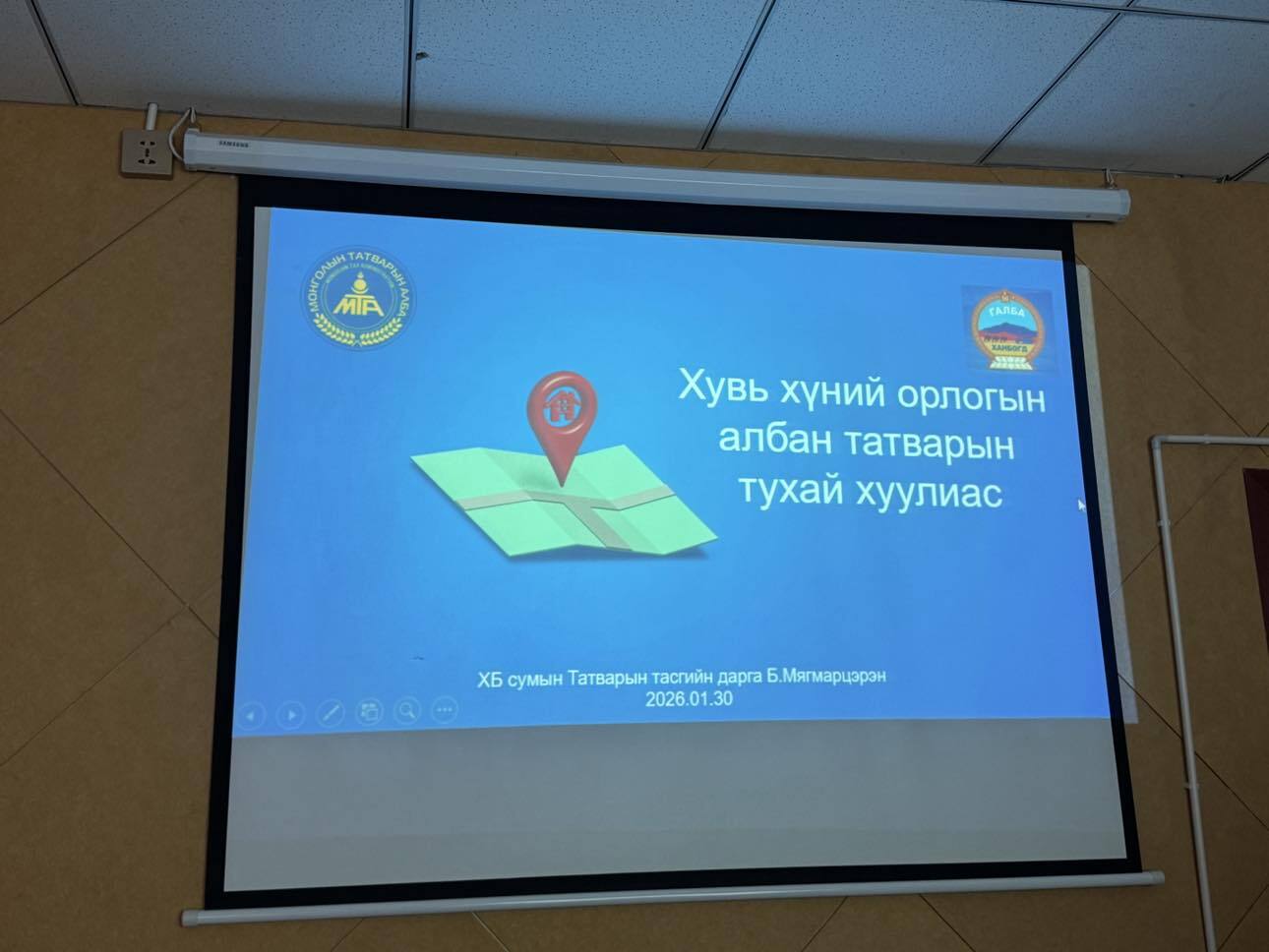 2026-02-02 00:00:00 | 7Өмнөговь аймгийн Ханбогд сум дахь сум дундын шүүхийн шүүгч, шүүхийн захиргааны ажилтнуудад 2026 оны 02 дугаар сарын 02-ны өдөр Ханбогд сумын Татварын тасгийн дарга Б.Мягмарцэрэн нь ХХОАТ-ын тухай хуулийн дагуу татварын тайлан гаргах, орон сууцны хөнгөлөлт эдлэх, их, дээд сургуулийн сургалтын төлбөрийн буцаан олголтын талаар сургалт зохион байгууллаа.